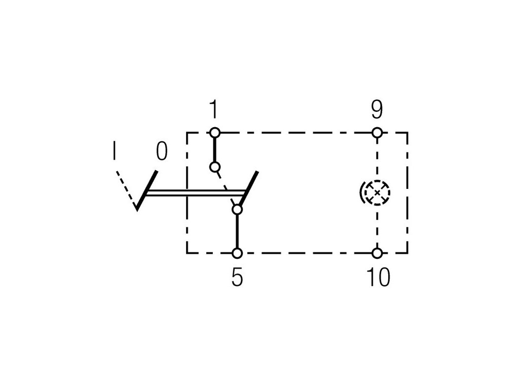 - Spínač, západkový, jednostupňový, s jedním obvodem, určený pro osvětlení prostoru
