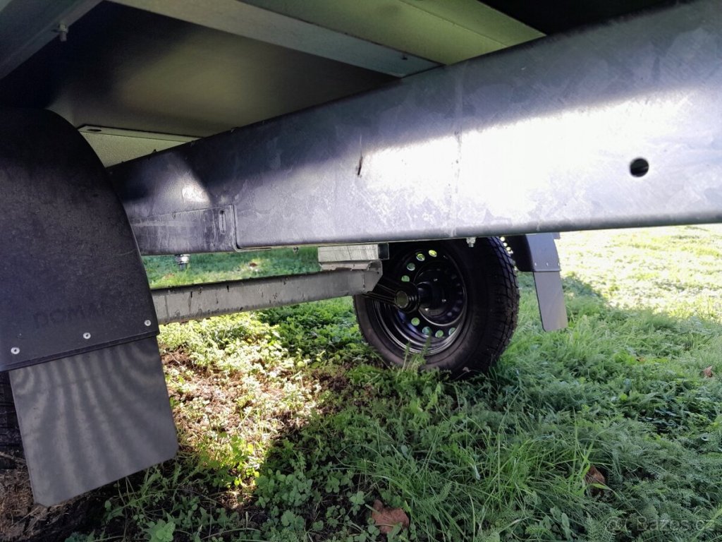 Nebrzděný přívěs s celkovou hmotností 750 kg. Ložná plocha 2050x1090x350 mm. Provedení s "V" ojí, plechové bočnice s Al-Zn úpravou, 13" kola, 7pólová elektroinstalace, podlaha...